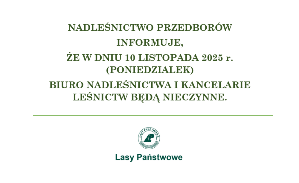 BIURO NADLEŚNICTWA I KANCELARIE LEŚNICTW BĘDĄ NIECZYNNE.